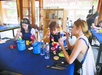 近日,刘三姐文化印象博物馆在广西壮族自治区桂林市阳朔县开馆,游客今后在观看《印象·刘三姐》之后可移步博物馆,进一步了解刘三姐文化。首届“印象六三节”同时举办。图为游客在博物馆参与刘三姐对歌公仔上色体验活动。
