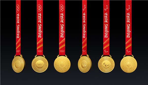 2021年10月26日,北京冬奥会开幕倒计时百天之际,冬奥会和冬残奥会奖牌问世。宛如同心圆玉璧的奖牌上,铭刻冰雪纹和祥云纹。古老东方文明与奥林匹克精神,于方寸之间交相辉映。