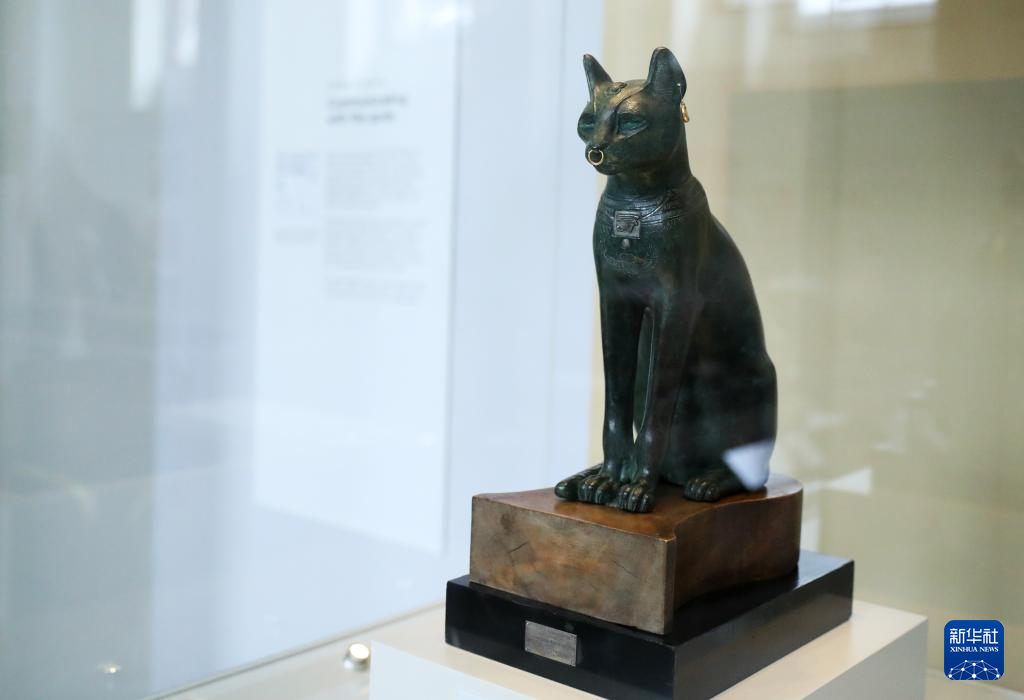 5月11日,在英国伦敦大英博物馆,参观者拍摄藏品“盖尔-安德森猫”。“盖尔-安德森猫”是一件古埃及青铜猫坐像,收藏家盖尔-安德森1939年将其捐赠给大英博物馆,从此雕像得名“盖尔-安德森猫”。