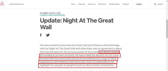 爱彼迎发官方声明:不再继续举办长城“奇屋之夜”活动