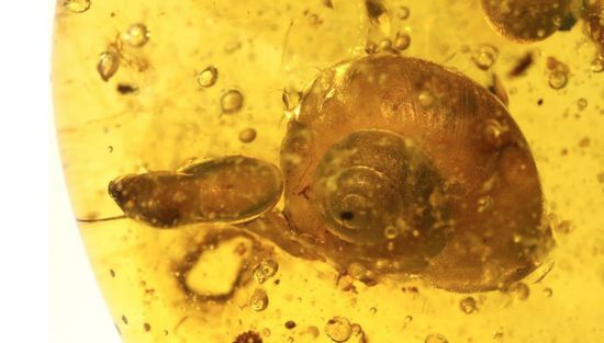 科研人员发现一亿年前带触角的蜗牛琥珀