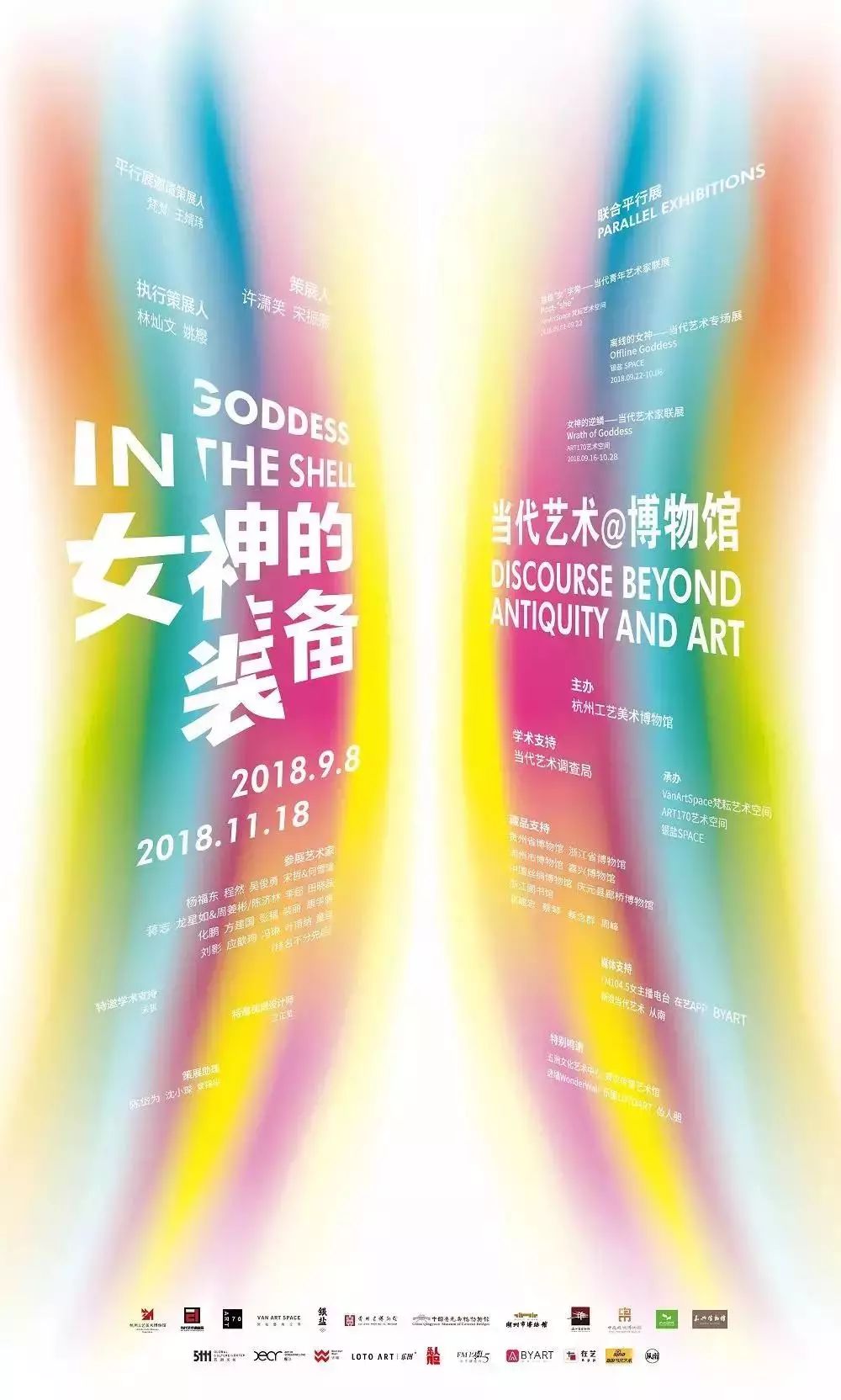 “女神的装备--当代艺术@博物馆”于2018年9月8日至2018年11月18日在杭州工艺美术博物馆一、二楼临展厅举行。本届展览是杭州工艺美术博物馆自开馆以来,首个将历史文物与当代艺术置于同一空间展出的展览。展览共联合12家博物收藏单位和个人,展出98组/120件文物藏品,囊括服饰、书画、陶瓷、漆器、金银器等多种类型;以及展出来自21位艺术家的23组/73件艺术品,涵盖摄影、装置、绘画、雕塑、多媒体影像等创作手段,其中10组作品还是艺术家们特别为此次展览创作的。