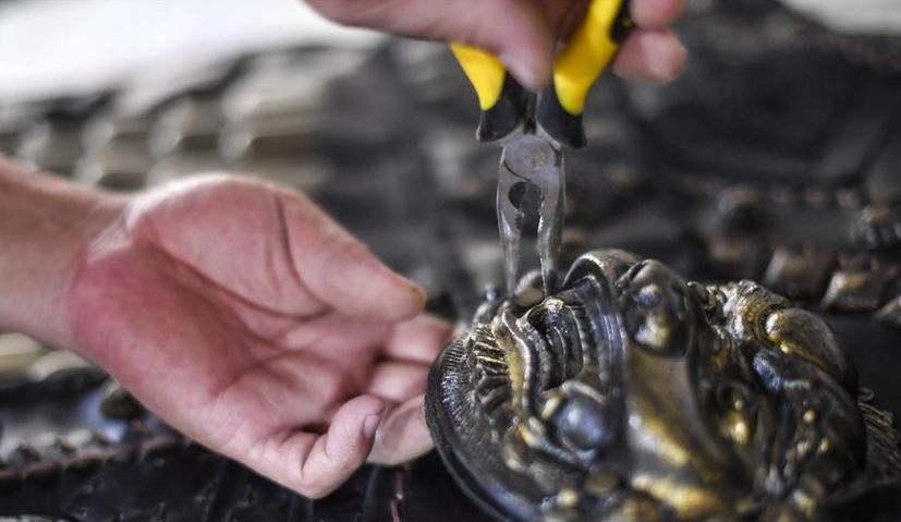 今年50岁的杨光权,自幼跟随家中长辈学习打铁技艺,对手工制品充满兴趣。他年轻时干过铁匠,做过买卖。2013年,他萌发了制作金属工艺品的念头,便重新拾起打铁锤,用着老技艺,做起新产品。走进杨光权位于长春市巴蜀映巷文化商业街区的工作室,栩栩如生的盔甲勇士、精致的金属摆件让人应接不暇。经过多年经营,效益越来越好的同时,他还发起了一个草根艺人的合作平台,吸纳了近百位手艺人,涵盖剪纸、刀画、木雕等70多个手工技艺门类,由平台负责为工艺品找市场,让手艺人能够更专心于创作。