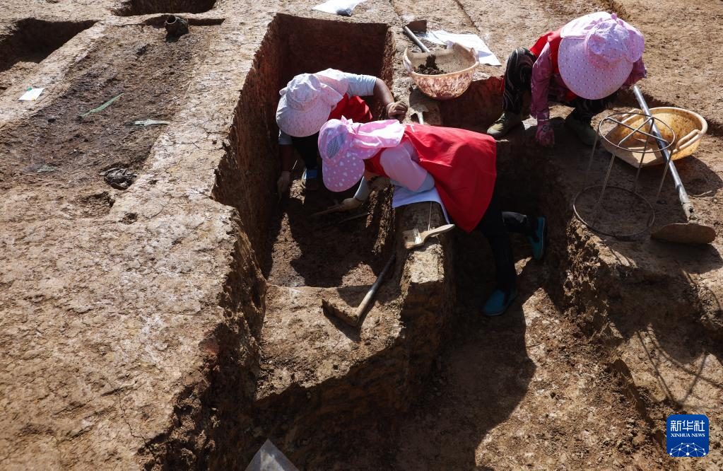 考古工作人员在盐源县老龙头遗址考古现场发掘(6月19日摄)。