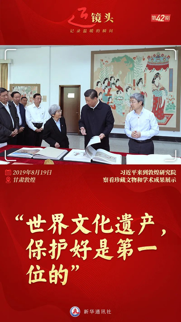 2019年8月19日,习近平总书记在甘肃考察期间,专程前往敦煌研究院,了解敦煌文物保护和学术研究情况。