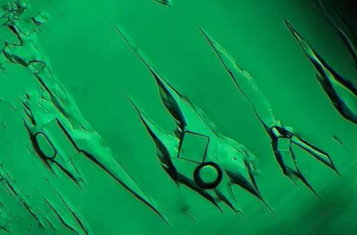 三相包体(气—液—固)、两相包体(气—液)、矿物包体等,裂隙常较发育。