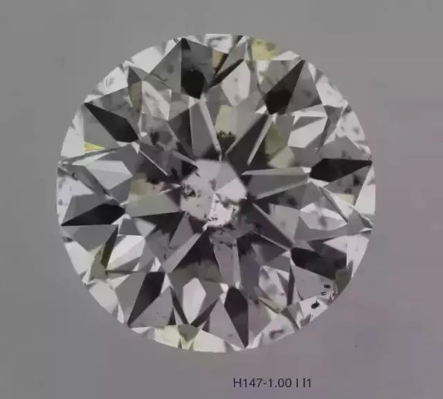 从冠部观察,肉眼可见钻石具内、外部特征,细分为P1、P2、P3。
