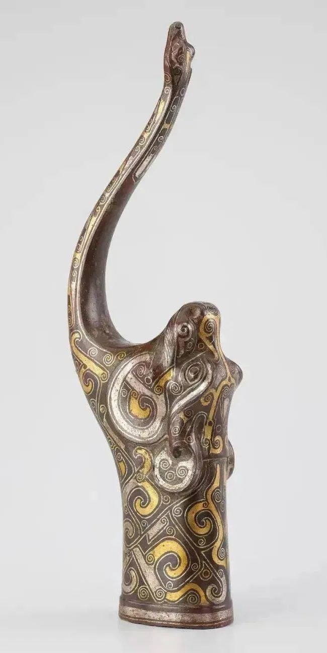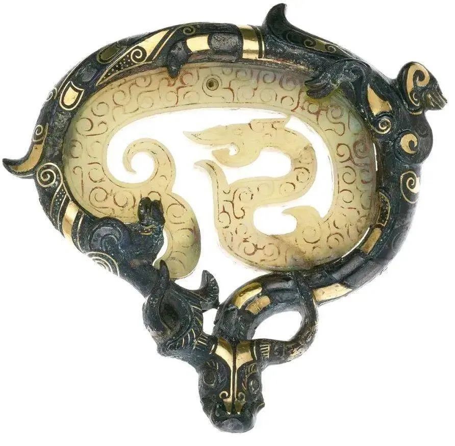牛首错金嵌玉龙形带钩