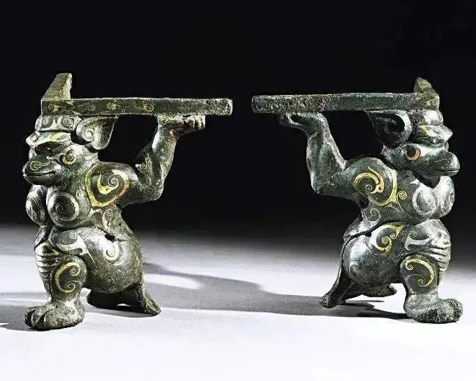 疑似金村出土的错金银托举神兽案足