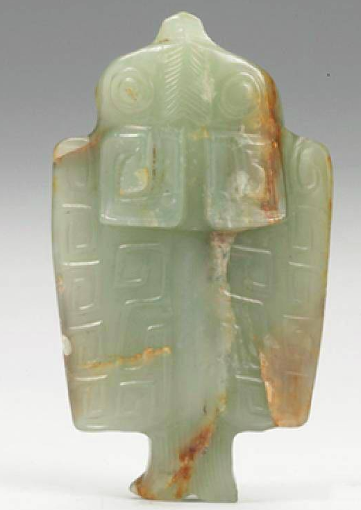 “沁色”是玉收藏中常见的名词,也是古玉的重要鉴定标准。 玉器埋藏土中或泡在水中,长期与其他物质相接触,会出现矿物质侵蚀等自然现象,形成颜色上的变化,就被称为“沁色”。 商·玉鸮的黄色沁 山西博物院藏