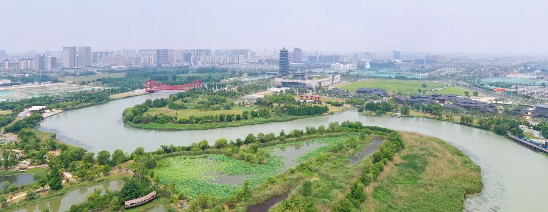 这是2022年5月25日拍摄的扬州市运河三湾景区(无人机照片)。新华社记者 李博 摄