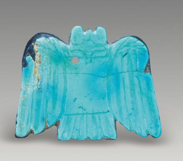 古埃及人很早就把绿松石镶嵌在饰物上。下面这件黄金镶嵌绿松石的臂饰,就是从古埃及王后的木乃伊手臂上发现的。