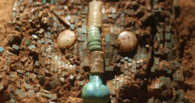 考古人员在显微镜观察下还发现,剑柄上镶嵌的绿松石还有着以青铜工具进行表面打磨处理的痕迹,这也侧面反映了当时的青铜工艺发展水平。