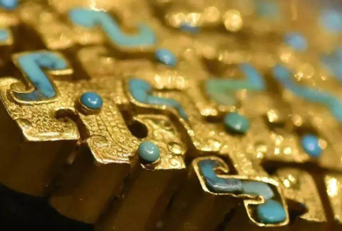 金柄蟠虺纹镶嵌绿松石铁剑(剑柄部分)