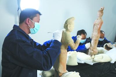 -专业技术人员对敦煌博物馆馆藏陶质彩绘文物进行修复-