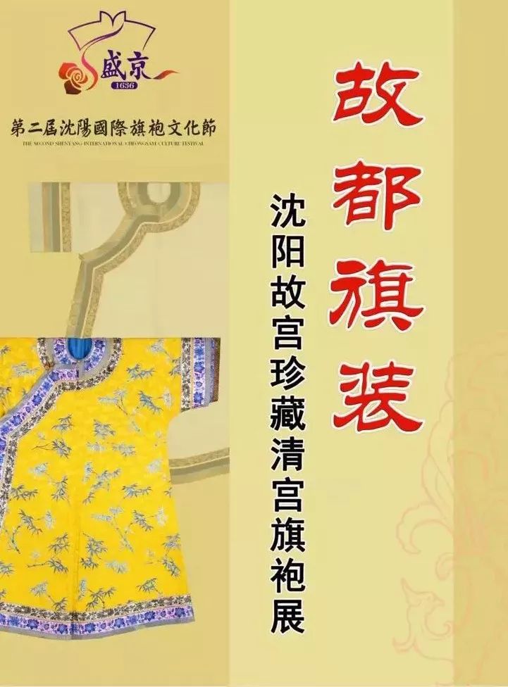 “故都旗装--沈阳故宫珍藏清宫旗袍展”于2018年9月18日至2018年9月30日在沈阳故宫博物院举行。此次展览精选了沈阳故宫珍藏的十余款旗袍,均为清宫后妃日常穿用的吉服袍、常服袍。它们由清宫造办处和江南织造承做,无论其设计与做工,还是汇聚了诸多传统元素的图案纹饰,均体现了清中期宫廷制作的最高水准,代表了清宫旗袍的雍容华丽与皇家风尚。