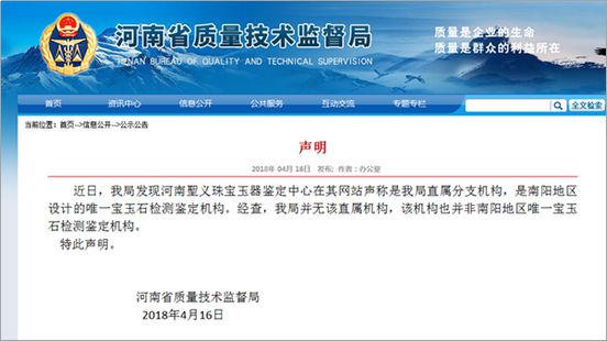 河南一珠宝玉器鉴定中心谎称直属省质检局