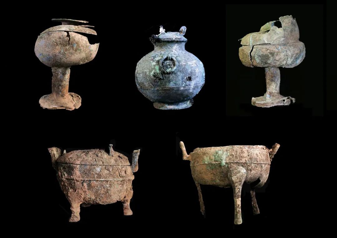 M2出土铜罍、盉、盘、斝、爵(M2 :1、2、23、3、8)
