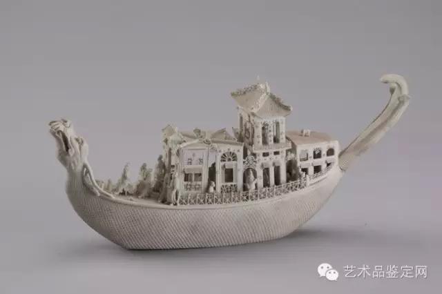 清 素胎镂雕瓷楼宇人物龙船 云南省博物馆藏