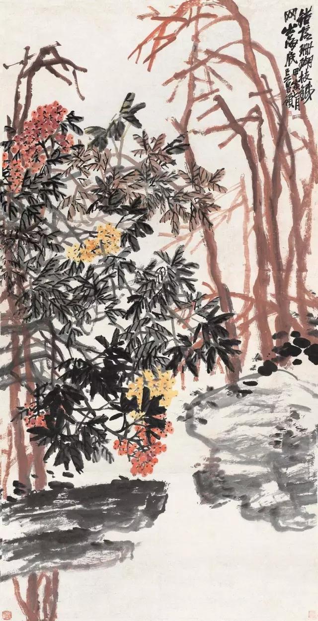 清 吴昌硕 《错落珊瑚枝》 纸本设色