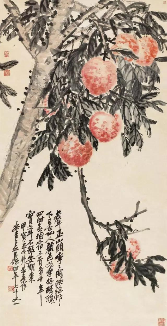 清 吴昌硕  《桃实图》  纸本设色