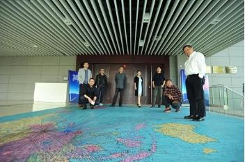 -展览作品《世界地图》放置在展厅入口的地板上-