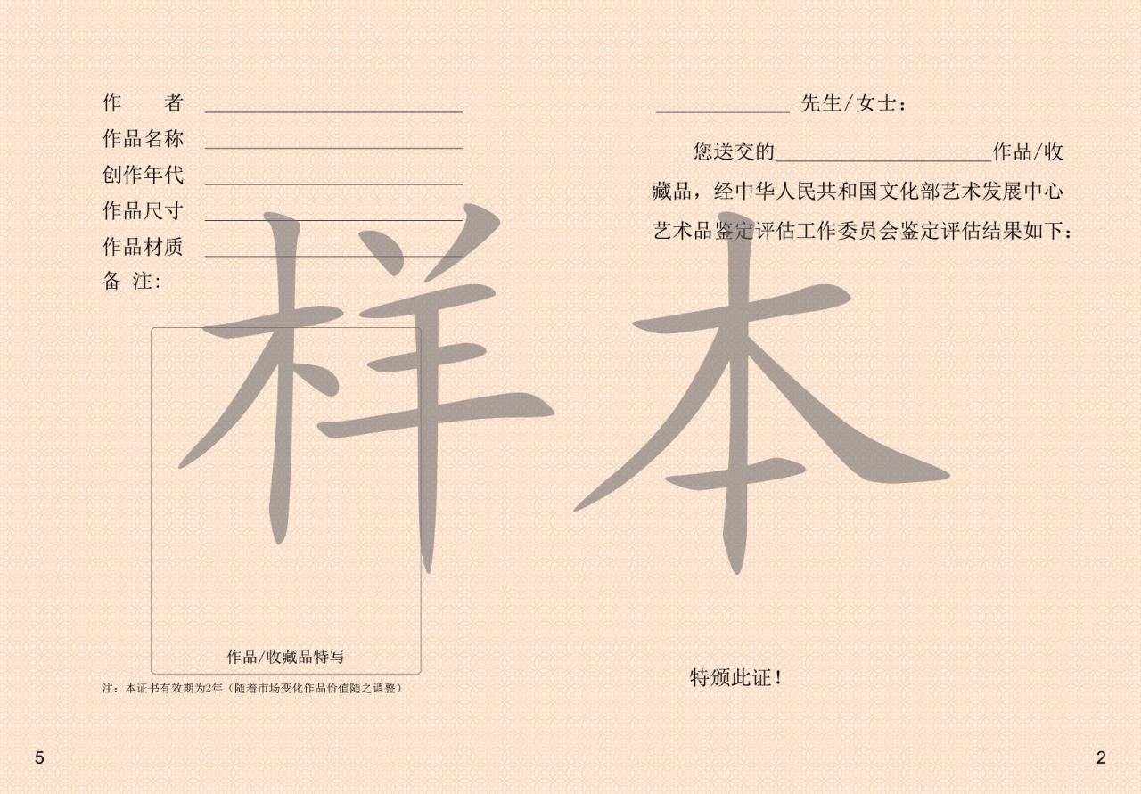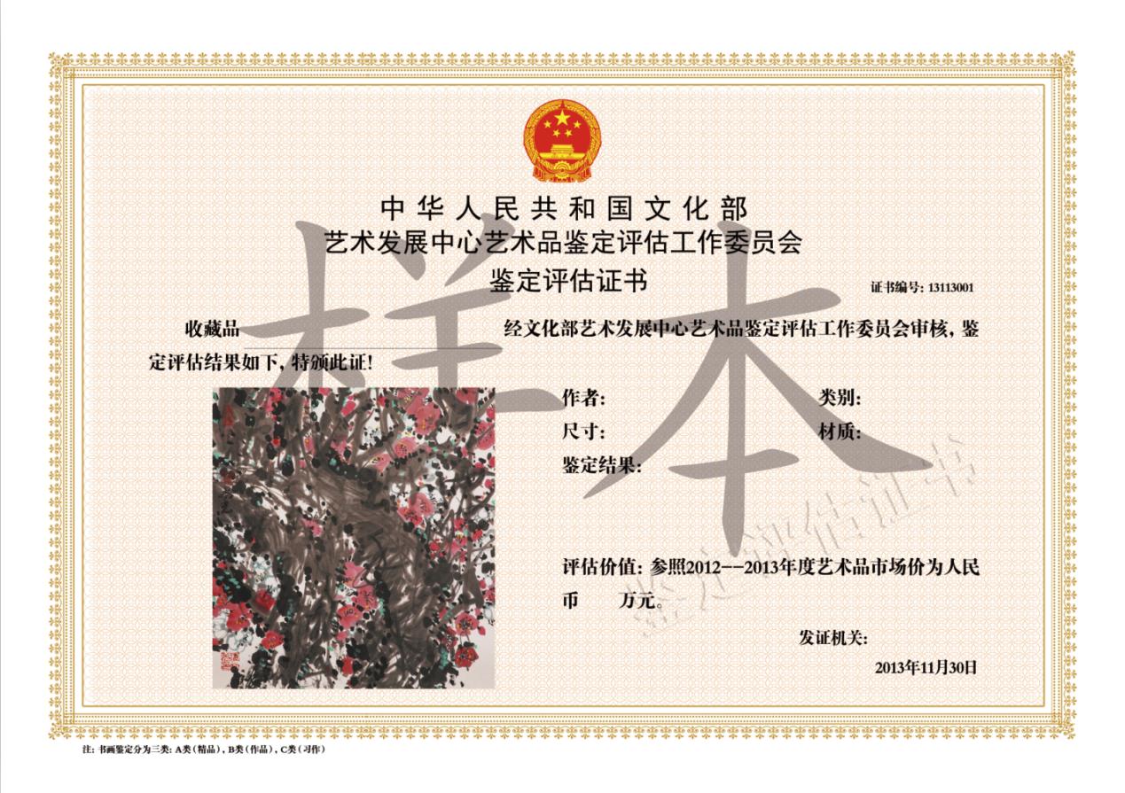 根据文化部艺术发展中心指示,“文化部艺术服务中心艺术品鉴定评估广东工作站”现正式更名为“文化部艺术发展中心艺术品鉴定评估广东工作委员会”,新版“鉴定评估”“润格”证书正式启用。