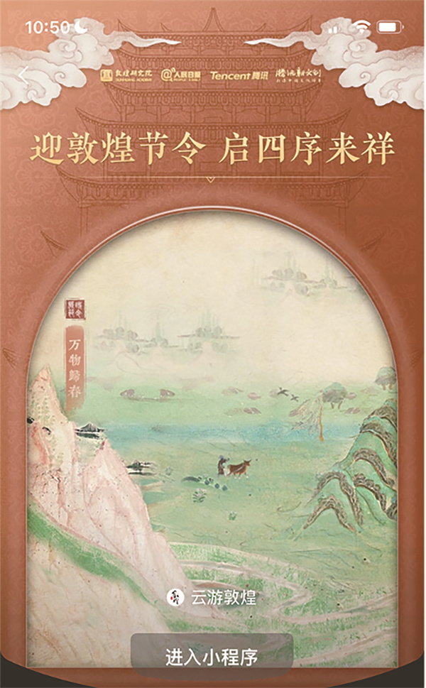 “云游敦煌”小程序是由敦煌研究院、人民日报新媒体、腾讯联合推出的首个拥有丰富敦煌石窟艺术欣赏体验的小程序,旨在让全世界用户能够更加亲近敦煌,感受丰润厚重的敦煌文化艺术之美。自2020年上线以来,“云游敦煌”便获得了广大用户的欢迎和支持,据统计,截至目前“云游敦煌”拥有了超千万的独立用户,且累积浏览量已超6000万。 (甘宣)