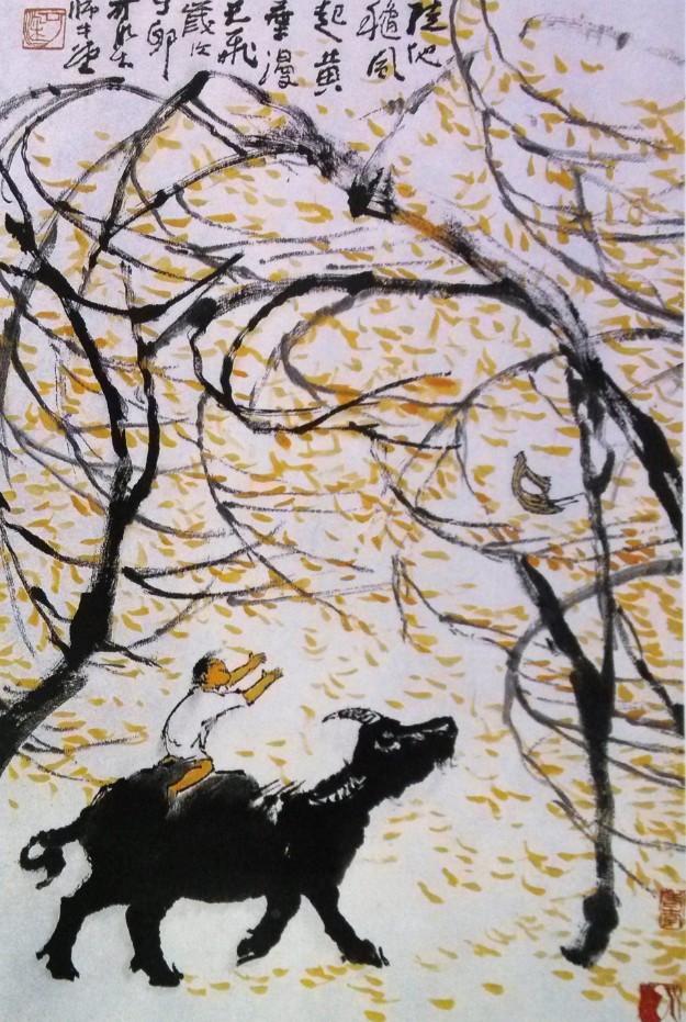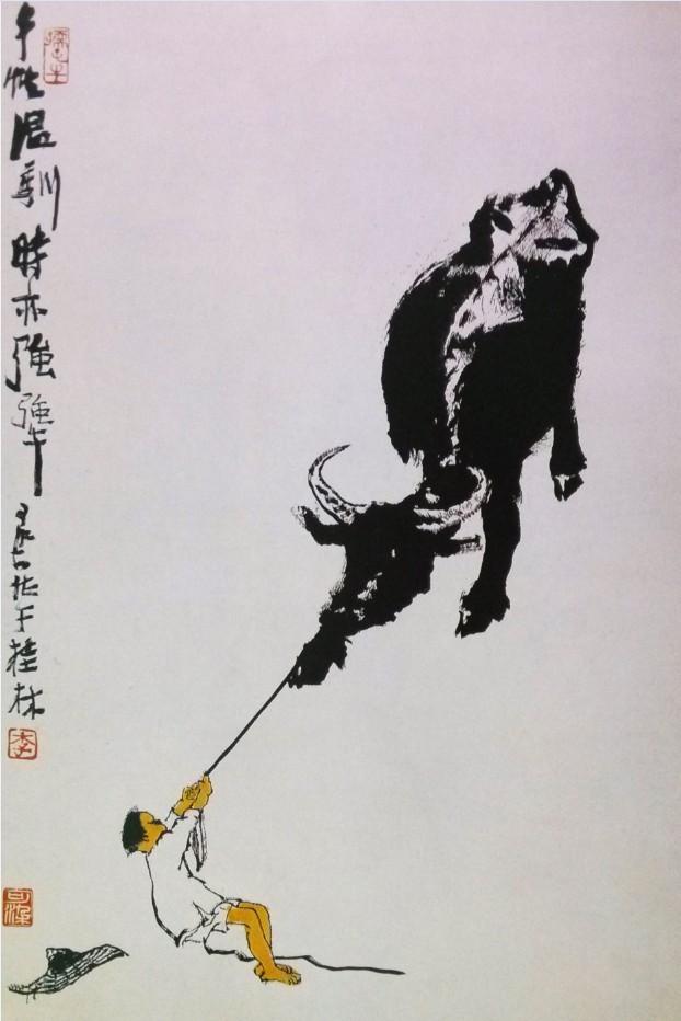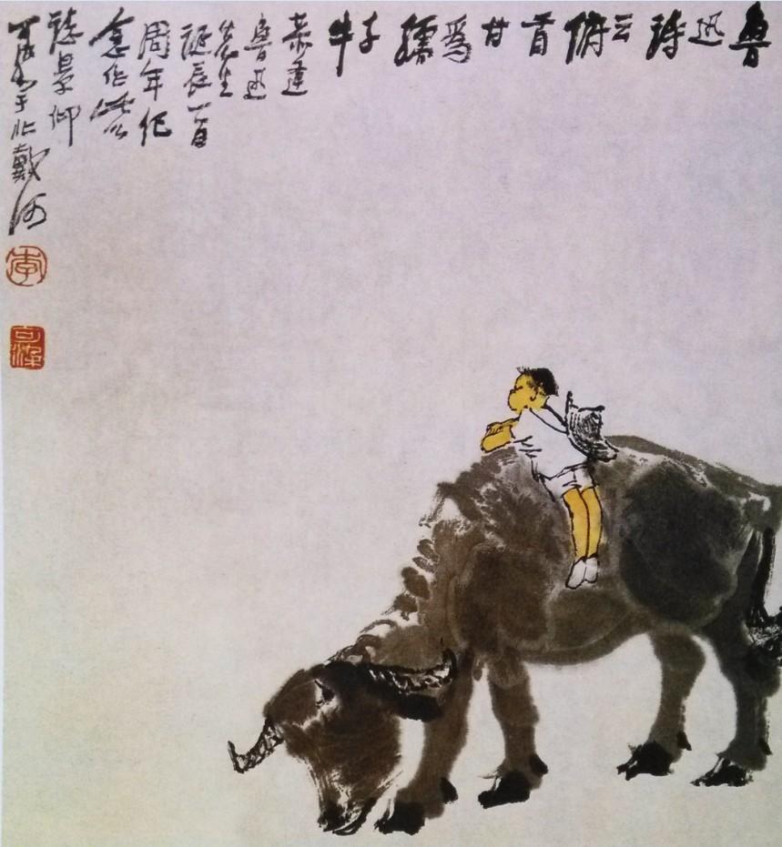 1980年 春塘渡牛图 69x46cm
