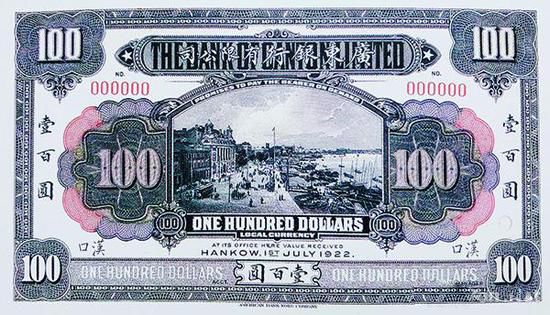 图4 广东银行有限公司发行的民国十一年(1922年)壹百圆券,印有上海最知名景点外滩图景。