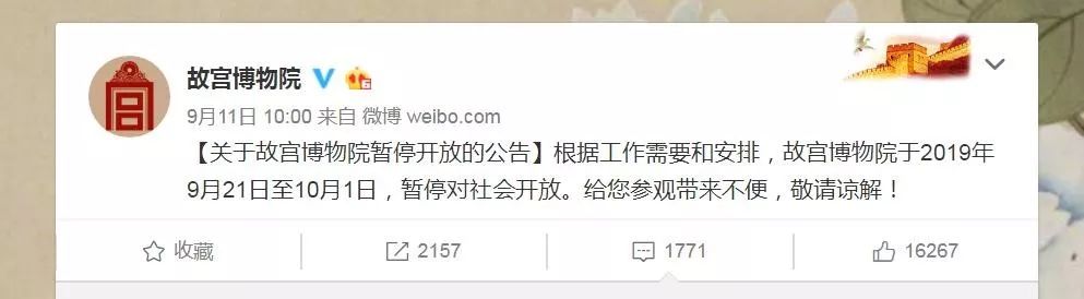 - 故宫博物院于9月21日至10月1日暂停对外开放 | 艺术头条