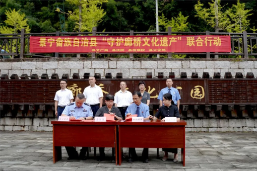 活动上,景宁畲族自治县人民法院、人民检察院、公安局、文化和广电旅游体育(文物)局共同签署《关于建立廊桥文化遗产保护司法协作机制的实施意见》,充分发挥司法在文物保护中的作用,促进行政执法与司法有效衔接,提升行政执法和司法服务廊桥文化遗产保护水平。