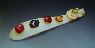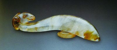 带钩,即带扣。古人用之连接束腰,一头有钩,一头有钮,功能相当于现在的皮带扣,也可悬挂囊袋、装饰品等。带钩在新石器时代便已出现,春秋战国时期趋于成熟,汉代发展至鼎盛。至魏晋南北朝时期,更加方便、坚固的鞢带逐渐取代了带钩的使用。此后日益衰微,直到元明清三朝再次兴盛。带钩作为衣饰的一部分,它的制作往往十分精美,造型多种多样,所用材质不限,玉石、金属、骨、木等现较为多见。材质珍贵、制作精良的带钩常常与古人尊贵的身份地位相关,在实用功能减弱后,逐渐成为文人士大夫收藏赏玩的对象。