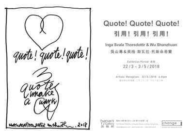 吴山专和英格・斯瓦拉・托斯朵蒂尔个展《引用!引用!引用!》 谨订于2018年3月22日汉雅轩开幕, 展览以二百九十多件作品陈述两位艺术家逾三十年创作的演化。展览将持续到2018年5月3日。