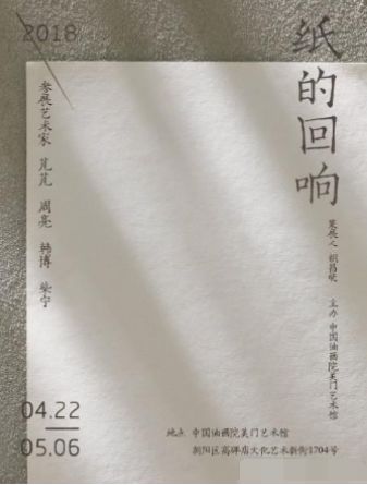 “纸的回响”群展于2018年4月22日至2018年5月6日在中国油画院美门艺术馆举行。