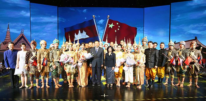 4月28日,应“相约北京”艺术节组委会邀请,柬埔寨王家舞团在北京天桥艺术中心举办庆祝中柬建交60周年——柬埔寨王家舞团专场演出。文化和旅游部党组书记、部长雒树刚,柬埔寨王国诺罗敦·帕花黛薇亲王,柬埔寨驻华大使凯·西索达等双方嘉宾出席观看。此次演出以柬埔寨传统宫廷舞蹈为主,不仅展示了辉煌灿烂的高棉文化,更表现了中柬传统友谊的深厚和对两国关系持续友好发展的热切愿望。