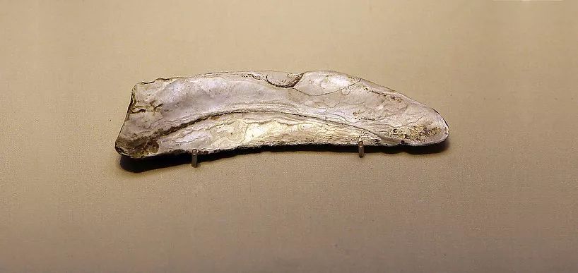 器物示例:石耜,长23.3厘米,宽23.5厘米。新石器时期,把石耜作为掘土和翻地农具。它比铲体形大,扁平锋利,多为长方形,也有舌形、桃形、梯形和椭圆形,两面刃。商朝,石耜仍在农业上占有重要位置。