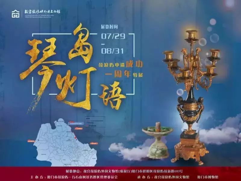 “琴岛灯语--鼓浪屿申遗成功一周年特展”于2018年7月29日至2018年8月31日在故宫鼓浪屿外国文物馆举行。展览共展出30余件工艺精湛的灯具,它们大多数来源于厦门市博物馆,作为中西文化交融的重要载体,透过一盏盏灯,鼓浪屿旧时光会重现在您的眼前。