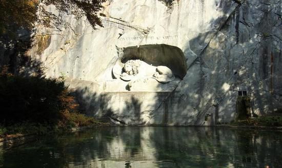 卢塞恩标志景点之一,也是每个旅行团必到的景点。在老城区的一条小路深处,根据路面上的指示不难找到。这是一只背部中箭垂死悲哀的狮子,隔着一个池子望着石壁上的这只狮子,他的神情悲恸,在生命走向尽头时,却似乎有着无限的委屈遗憾无处诉说。马克吐温说这是世界上最令人难过,最让人动情的雕塑。这个纪念碑就不仅仅是个雕塑,而是对逝者英灵的纪念,对和平的祈求和瑞士作为一个永久中立国国家信仰的体现,更是瑞士国力从贫穷到富强的历史折射。与其说狮子纪念碑是卢塞恩的标志,不如说,它是瑞士的标志。