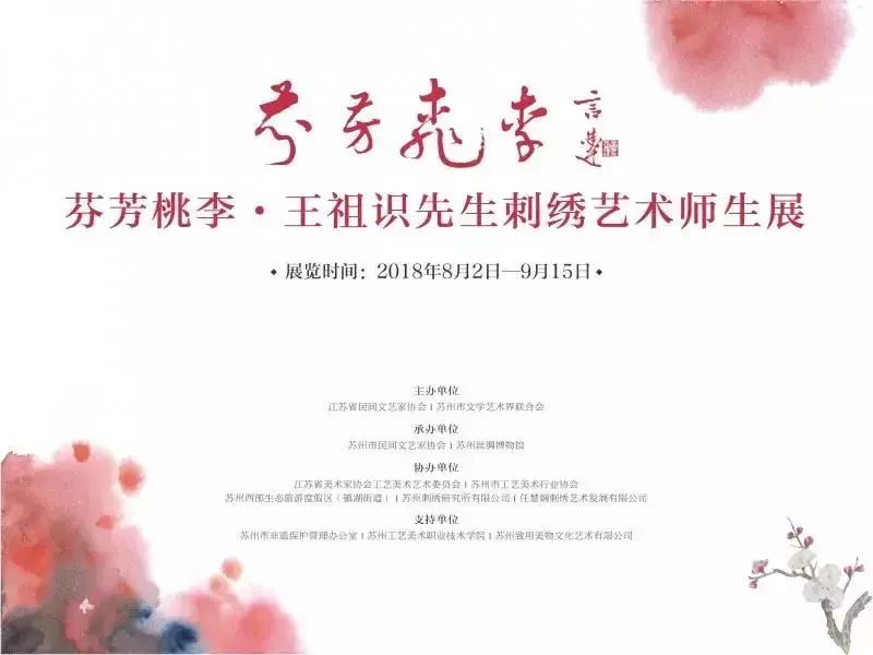 “王祖识师生刺绣精品展”于2018年8月2日至2018年9月15日在苏州丝绸博物馆举行。本次展览由王祖识先生领衔、十四位高足襄助,共计五十余件苏绣精品。不仅有人物肖像,更有弟子们各具特色的高水准作品。其中多件展品出自台湾私人藏家收藏的王祖识先生苏绣经典作品,一展王祖识大师和众多弟子的指尖传奇。
