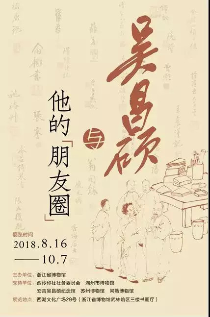 “吴昌硕与他的“朋友圈””于2018年8月16日至2018年10月7日在浙江省博物馆武林馆举行。