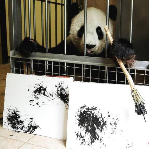 近日,在奥地利维也纳美泉宫动物园内,大熊猫“阳阳”手持毛笔画起了“水墨画”。她的作品将在网络上以每张490欧元(约合3876元人民币)的价格出售。所得收入将为制作一本有关维也纳动物园里大熊猫的画册提供资金。
