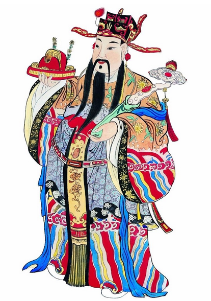 禄星左手捧如意,右手托官帽
