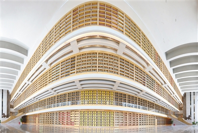 中国国家版本馆西安分馆文济阁巨型通顶书墙。