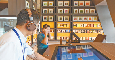参观者在中国国家版本馆广州分馆进行视听体验。