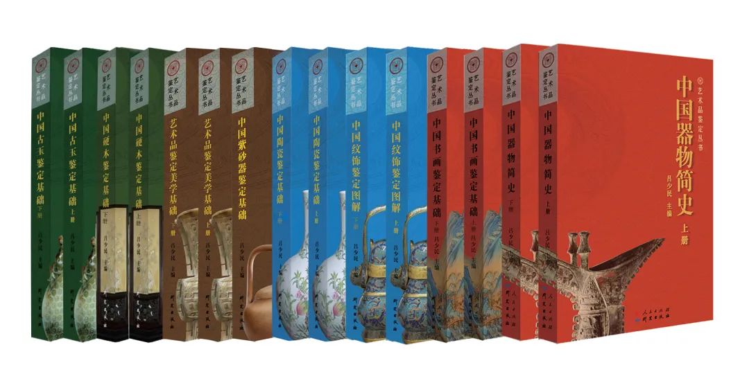 《艺术品鉴定丛书》是吕少民院长组织专家学者编纂的国内首套文物艺术品鉴定系列丛书,是一部具备较强实用性的鉴定教科书、工具书,其中包括了《中国器物简史》《中国书画鉴定基础》《中国陶瓷鉴定基础》等八部著作,由人民出版社、中国出版集团、研究出版社联合出版发行。