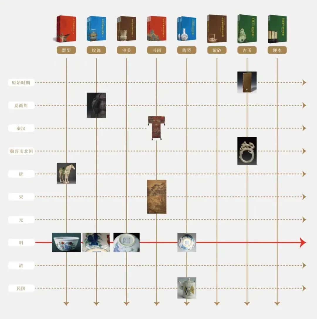 “时空形意比对法”是将文物艺术品最大限度还原至历史时间、空间的比对方法。在“时空形意比对法”的体系中,鉴定者先对每个朝代的书画、陶瓷、宝玉石、金属器、杂项等各种门类艺术品进行细致研究,再从政治、经济、宗教、文学和科学技术等角度,侧面解析变化的内在原因,系统地分析器物演变与文化变迁的历史进程,纵向上对中华历代文物艺术品的器型、审美、纹饰等主要脉络予以系统梳理,构建起一个宏观的中国器物史架构。