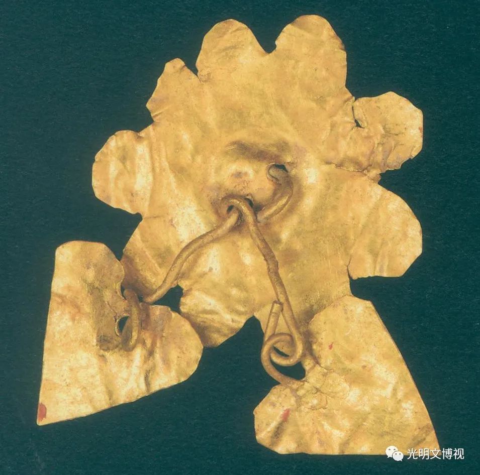 故宫博物院积极参与和乌兹别克斯坦等国的国际合作考古。图为联合考古队在乌兹别克斯坦拉巴特遗址挖掘出土的双耳罐(上)、颈部串饰(中)和金饰件(下)。故宫博物院供图