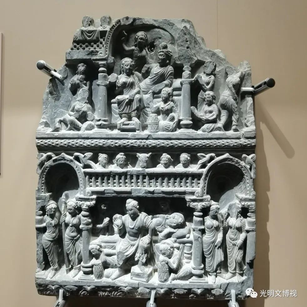 3月15日,由故宫博物院和巴基斯坦国家遗产与文化署考古与博物馆局 共同主办的“譬若香山:犍陀罗艺术展”在故宫文华殿开幕。图为展出的佛教故事石雕艺术品。李韵/摄