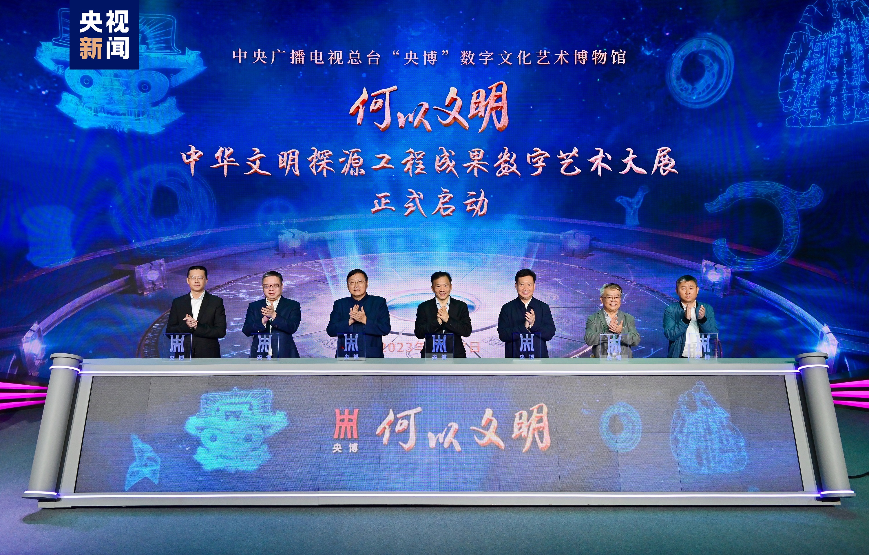 彭健明致辞时表示,启动“何以文明——中华文明探源工程成果数字艺术大展”,是中央广播电视总台深入贯彻落实国家文化数字化战略、推进社会主义文化强国建设的重要创新实践。展览借助沉浸式、数字化的方式,将中华文明起源发展的历程,以及各个时期的历史场景、发明创造等展现出来,让大众更加直观、形象地体验和感受中华五千年历史文化,助推文物艺术更好地走进百姓生活。总台愿与社会各界一起,依托强大的传播平台和丰富的内容资源,沿着中华文明长河流淌的方向,共同对“华夏大地何以中国、中华民族何以伟大、中华文明何以不朽”持续作答。